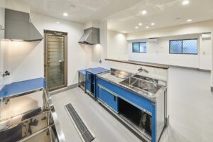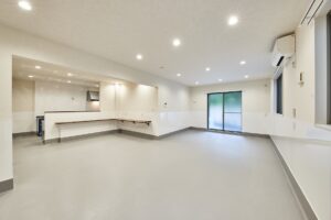 主に外国人実習生の住環境に着目し、異文化ならではの暮らし方に配慮した設計になっています。日本でストレスなく安心して生活できるように個室を完備、洗面、浴室、トイレなどはパブリックスペースで構成。帰属意識の強いインドネシアの国民性に合わせて、広めの食堂の設置。週末や夕食時には大勢でワイワイと食事をしたり、社内ミーティングを行うことも可能です。