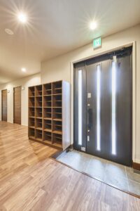 玄関には靴箱を設置、室内は原則スリッパ着用