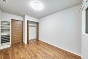 ベット・エアコン・大容量のクローゼットとシューズボックス完備